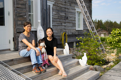 Kolmen sukupolven voimin: Isoäiti, äiti ja kolme lasta ryhtyivät pyörittämään kesäkahvilaa Timisjärvellä.